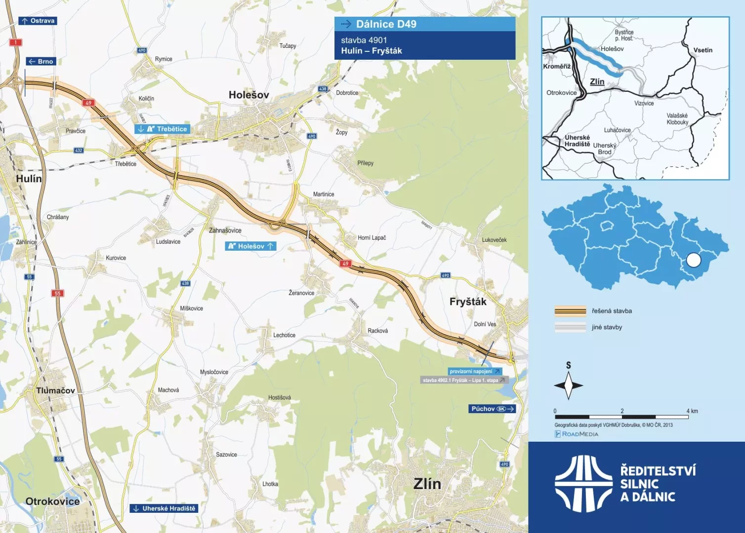 Na stavbu úseku z Hulína do Fryšťáku mají posléze navazovat další tři etapy z Fryšťáku do Lípy. Na ty naváže stavba z Lípy do Vizovic. Uvedení do provozu kompletní D49 se chystá na rok 2034.