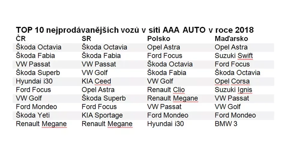 Zajímavostí je, že zatímco menší Škoda je kromě zmíněné ČR a SR druhým nejoblíbenějším vozem a v Polsku hájí 4. pozici, v maďarském žebříčku TOP10 se tento automobil vůbec nevyskytuje. Touto raritou však Maďarsko nekončí. V desítce nejpopulárnějších modelů zde najdeme vozy, které se naopak neobjevují v TOP10 zbývajících 3 zemí. Těmi jsou například druhé Suzuki Swift, pátý Opel Corsa, či šesté Suzuki Ignis. V Polsku a Maďarsku je na prvním místě Opel Astra. Vysoce oblíbený je zde také Ford Focus hájící druhou, resp. 3. pozici.