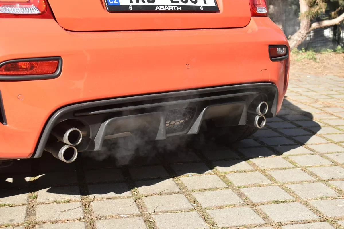 Výfukový systém Record Monza s aktivním ventilem dělá opravdu divy, kdo má rád brblání, s tímhle si užije a čtyři úzké koncovky dodávají dynamický šmrnc. V každém obchodním centru či podzemním parkovišti (akustika je důležitá) budete s Abarthem hvězdou, protože po nastartování a přepnutí do sportovního módu - to značí tlačítko s logem štíra - je to fakt rachot.