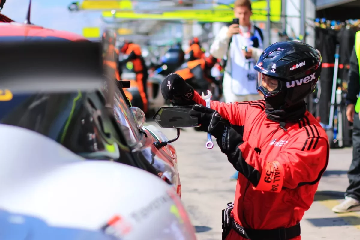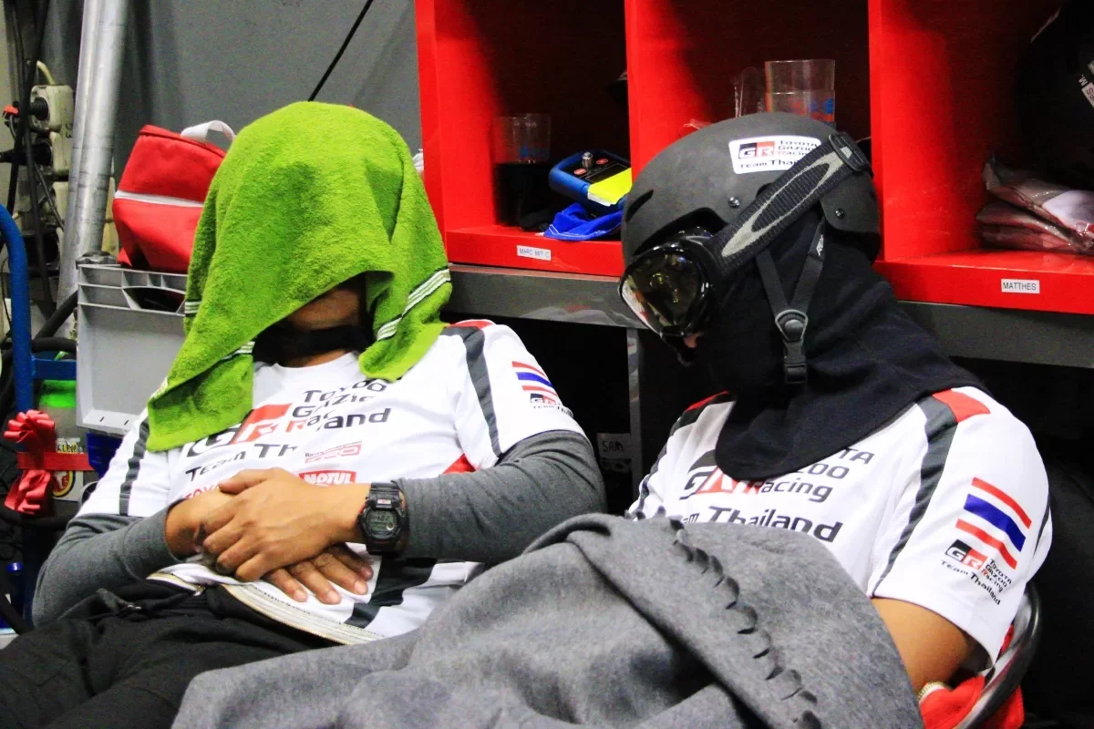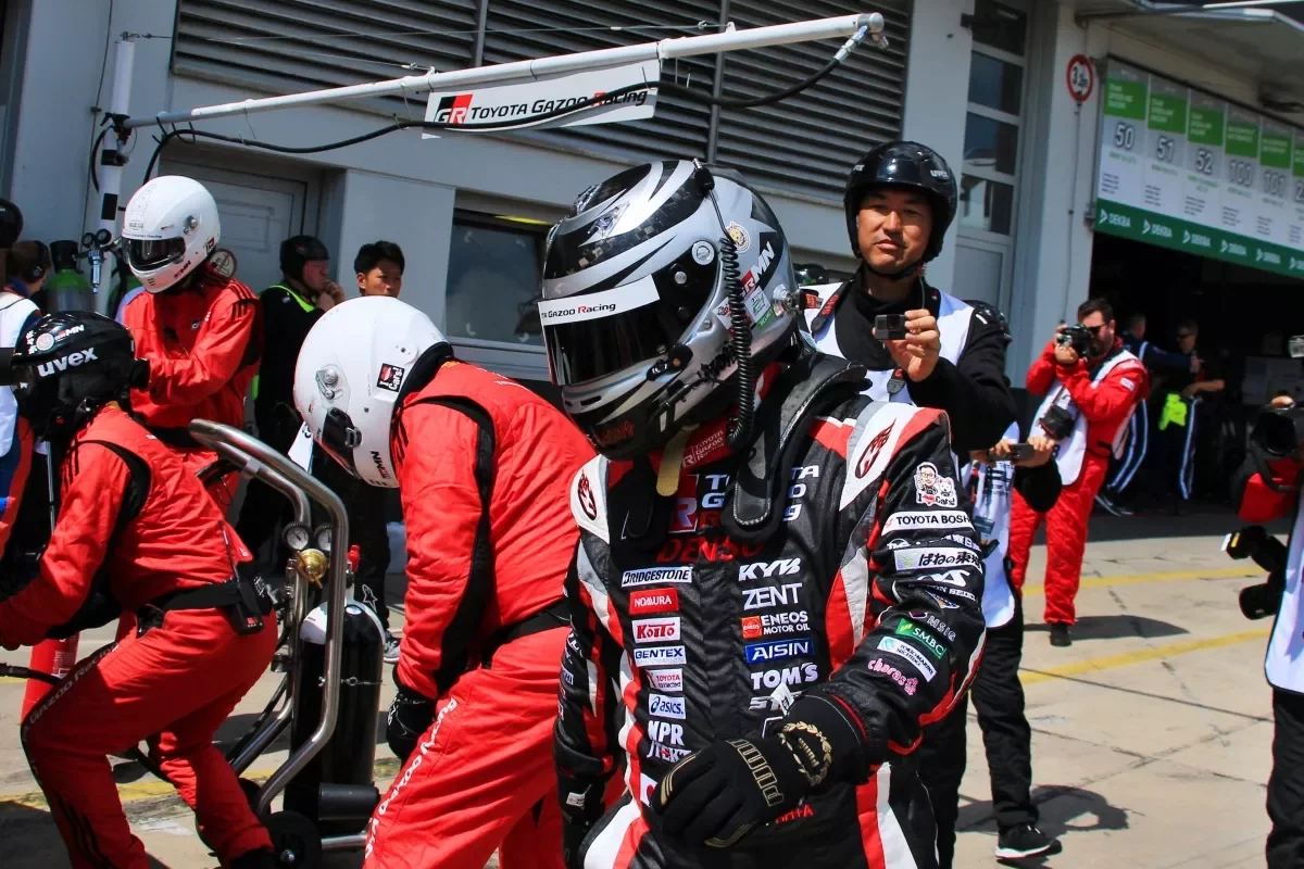 Odbíjí třetí hodina odpolední, blíží se závěrečný stint a poslední půlhodina 24hodinovky na Nürburgringu. Morizo vstává, nasazuje si helmu, pohlédne mi do objektivu a dáme si před závodem pěstičku. Jde se na to!