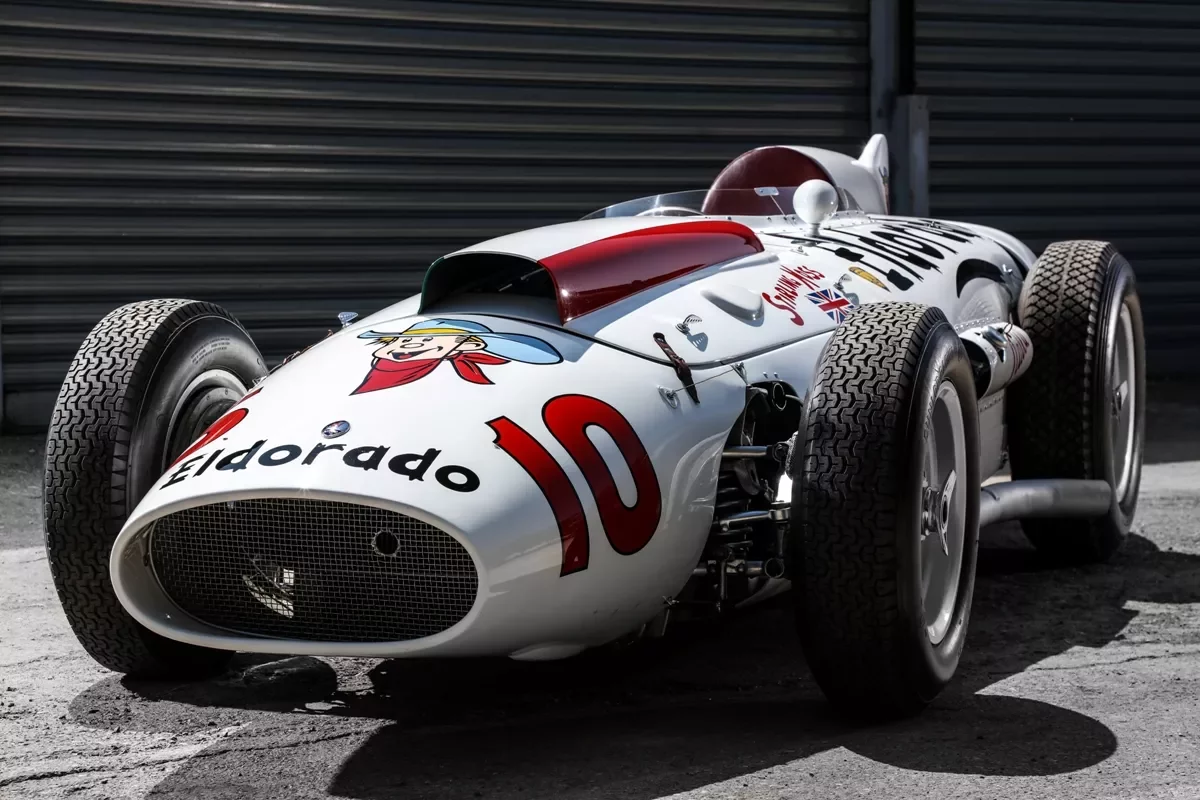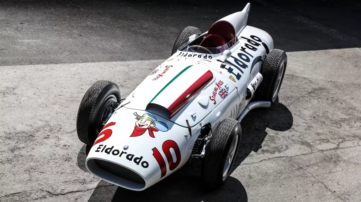 Kromě toho na voze nechyběl nápis Italia, tentokrát v jasně červené barvě, který hrdě hlásal zemi původu, a to jak sponzora, tak výrobce automobilu. Protáhlá silueta vozu Eldorado nesla ještě jméno řidiče, jenž startoval v závodě v „Monzanapolis“: nebyl jím nikdo jiný než Stirling Moss, jeden z nejslavnějších závodníků v dějinách motorsportu a bývalý jezdec Maserati.