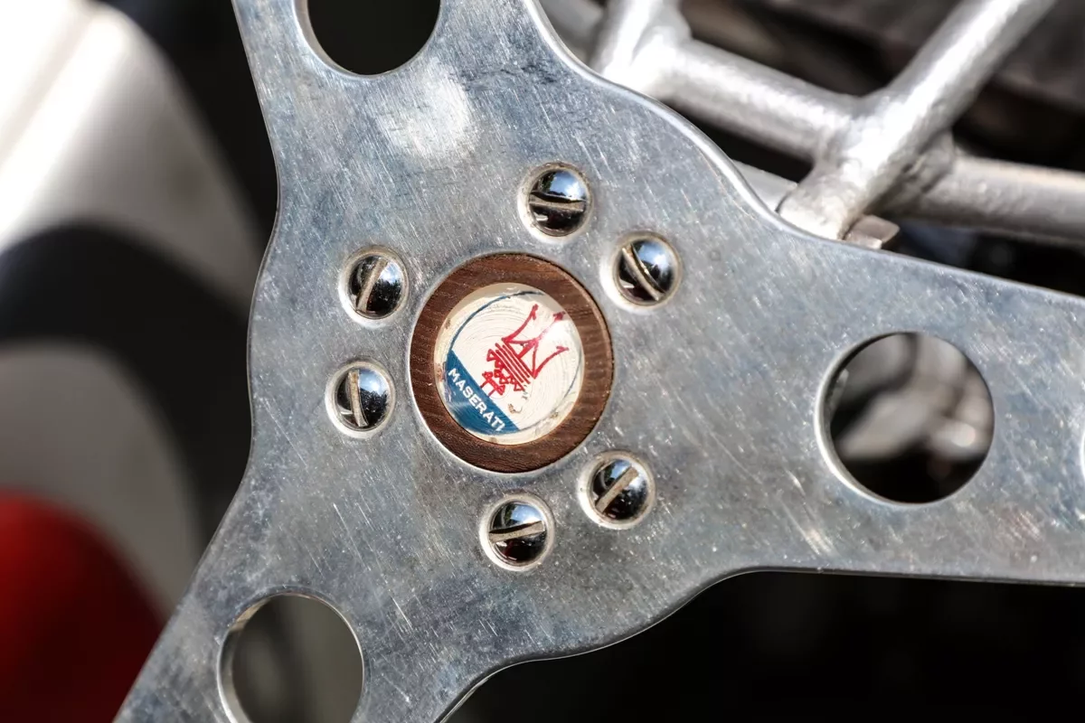 Ke snížení hmotnosti přispělo použití hořčíkových kol Halibrand, obutých do 18“ pneumatik plněných heliem. I díky těmto opatřením činila hmotnost vozu 758 kg. Ručně zhotovená hliníková karoserie z karosárny Fantuzzi se vyznačovala originální svislou aerodynamickou plochou za kokpitem a nápadným vstupem vzduchu pro účinné plnění karburátorů.