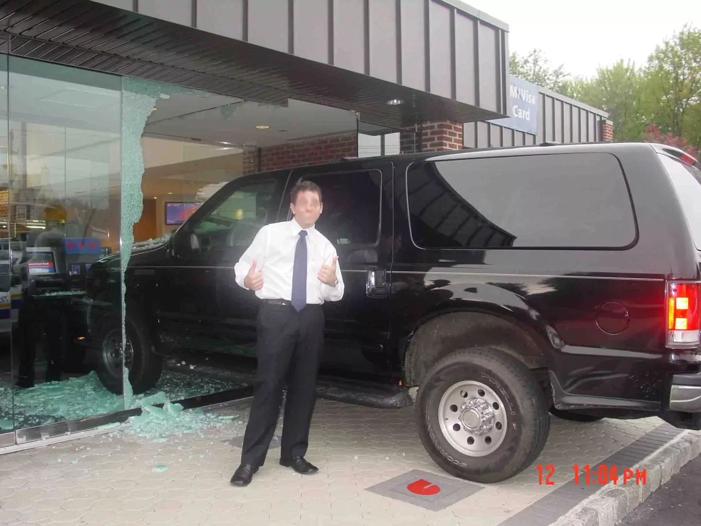 První drobná nehoda vůz potkala v roce 2004, kdy se Mattovi podařilo projet výlohou a skleněnými dveřmi banky a nabourat do bankomatu umístěného ve vstupní hale. Prý potom na autě zbyl škrábaneček a byla třeba vyměnit maska chladiče.