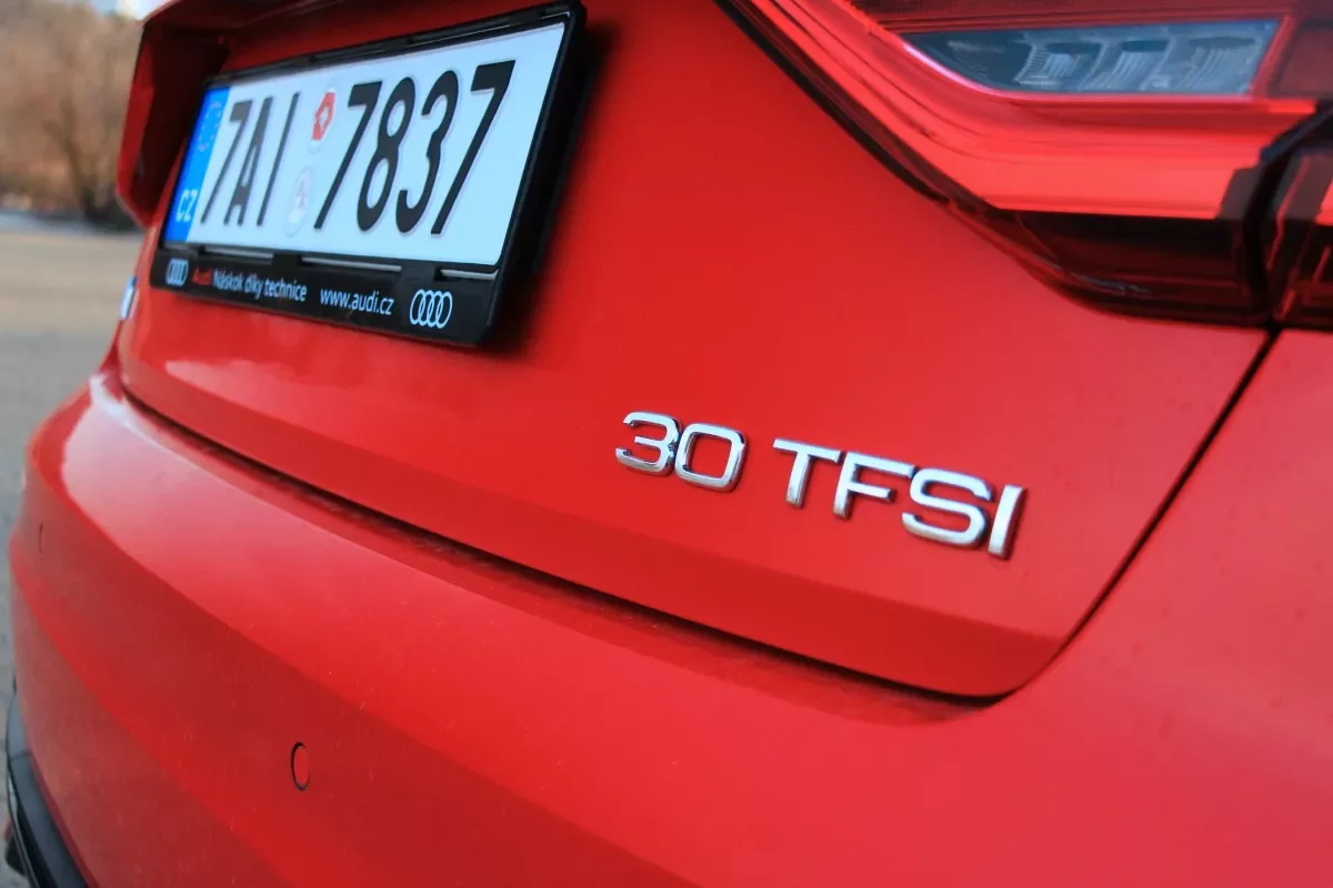 Pokud se ztrácíte v novém označování motorizací, nejste v tom sami. Na první pohled totiž také nemám žádné vodítko, co si pod dvojicí čísel představit. Jedno je jisté – 30 TFSI rozhodně neznačí třílitrový šestiválec, jak jsem skutečně zaslechl z jednoho rozhovoru kolemjdoucích, ale koncernový tříválec 1.0 TFSI naladěný na 116 koní. Raději jsem to ale přítomným kolemjdoucím nepřiznal.