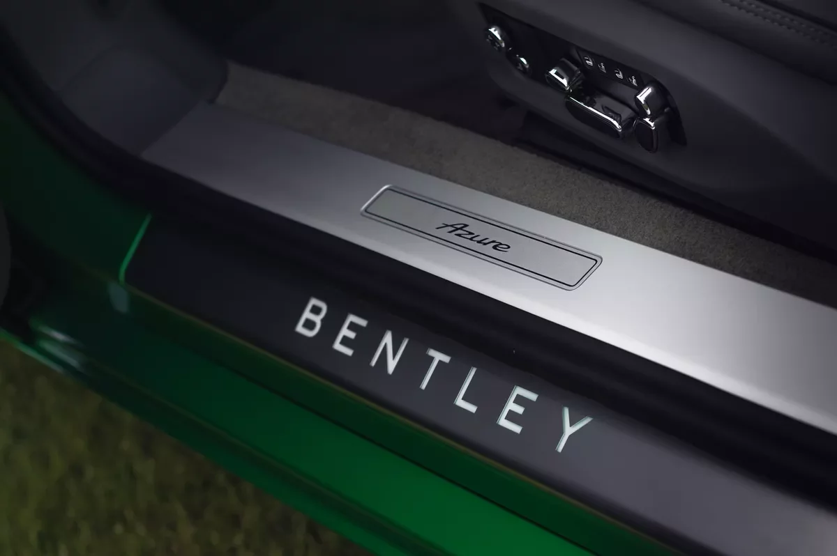 Karbon-keramické brzdy nenabízí žádný prostor pro fantazii. Jsou nekompromisní, okamžitě nastupují a s řidičem vůbec nediskutují. Když zavelí a opře se o pedál, dělají okamžitě všechno pro to, aby 2410 kilogramů vážící stroj zastavily. Vše jde poznat i na pohled, znám v Praze italské restaurace, které dělají menší pizzu, než má Continental GTC Azure brzdový kotouč. Jejich cena je více než 286 tisíc Kč