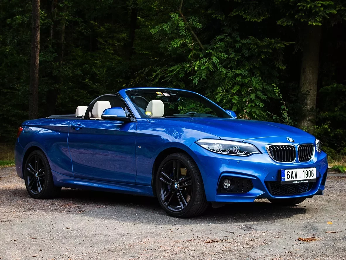 Nabídka BMW obsahuje hned několik různě velkých kabrioletů, mezi nimiž není řada 2 žádným nováčkem a zastává pozici nejmenšího možného výběru. Minulý rok však prošla modernizací, v jejímž rámci jsou změny vnějšku jen minimální. Přídi dominují větší ledvinky, vedle nichž se usadily standardní Bi-LED světlomety s novou grafikou a decentního přepracování se dočkaly i zadní svítilny. BMW pak rozšířilo nabídku příplatkových litých kol.