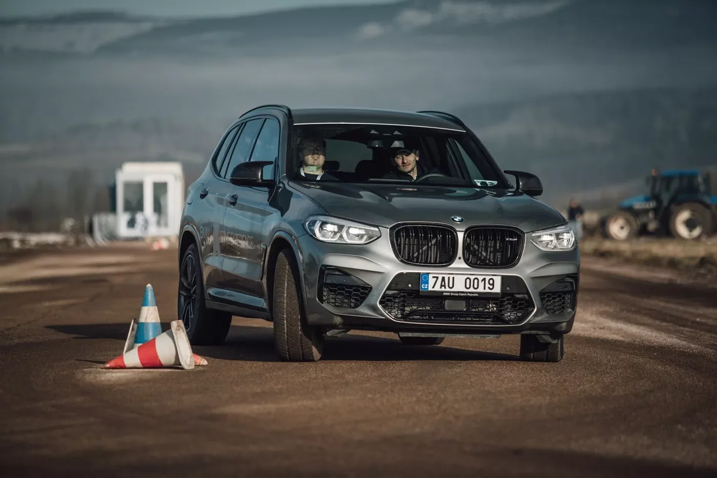 Poslední zkouškou byl tzv. parkur s umělými překážkami na křížení náprav a slalomem, který byl vyhrazen pro modely SUV. Největší BMW X7 M50d na mě bohužel nevyšlo, ale alespoň jsem si mohl znovu vyzkoušet menší modely X4 M40d a X5 40d, které testování zvládly překvapivě dobře. Kompaktnější X4 bylo pochopitelně obratnější, ale ani mastodontnější X5 se nenechalo zahanbit a překvapilo dobrou ovladatelností v kluzkých podmínkách.