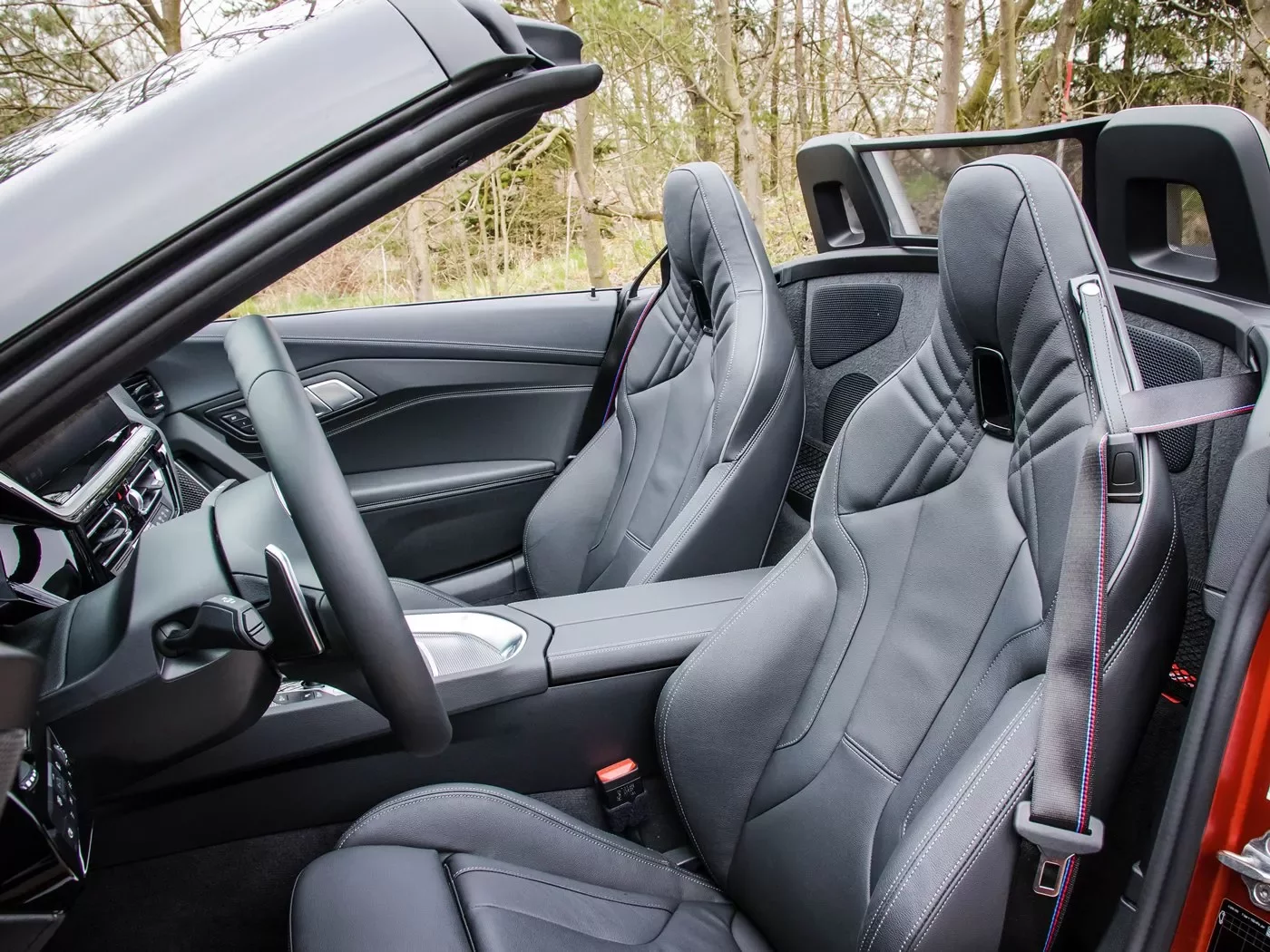Je ale na čase přestat s kocháním se a zjistit, co nové BMW Z4 M40i umí. Přestože je rozvor náprav oproti minulé generaci o 2,5 centimetru kratší, v interiéru je prostoru překvapivě mnoho. Za volantem se sedí nízko na dlouhé nohy a o silnou oporu těla se starají sportovní sedadla s výrazným bočním vedením. Nastavuji si svou ideální pozici a následně stiskávám startovací tlačítko vedle voliče převodovky.