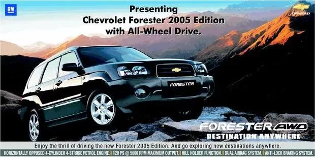 V případě Foresteru se americká značka nenamáhala změnit vůbec nic, ani název modelu, ostatně Forester měl všude ve světě dobré jméno, tak proč jej měnit. Bohužel se neslavil příliš velký úspěch, ačkoliv tamní tisk auto vesměs chválil. Pro chudou Indii byl Chevrolet Forester zřejmě příliš dobrý a drahý, a to na domácí značku Mahidra vládnoucí kategorii SUV nestačilo.