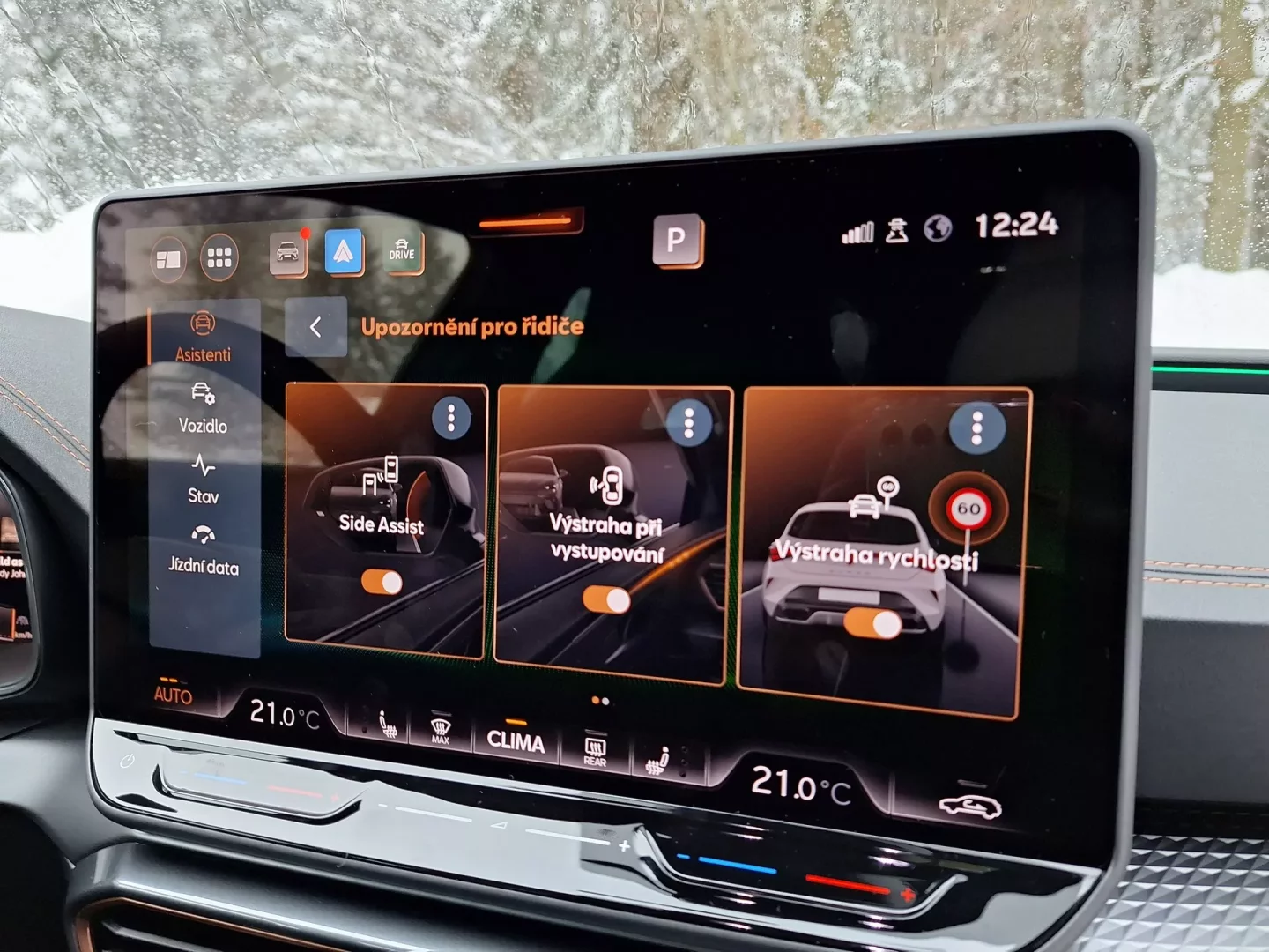 Chválu si zaslouží i zpracování celého infotainmentu na 12,9 palce velkém středovém displeji. Rychlost připojitelnosti na Android auto, vypnutí Start/stopu dvěma pohyby, stejně tak dvě kliknutími vypnutelný systém upozornění na překročení rychlosti, je fakt radostná. Vy se smějete, ale u některých aut tyto funkcionality hledáte hluboko v menu bez jakékoliv možnosti intuitivního postupu a stejně se k tomu nedopracujete.