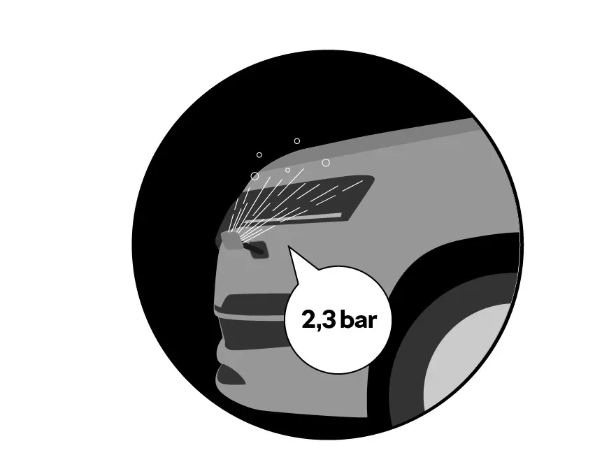 Na závěr se podíváme ještě na jeden prvek. Nejprve číslo: 2,3 baru. Právě takovým tlakem ostřikují výsuvné integrované ostřikovače vaše světlomety. Ono je totiž potřeba nejen dobře vidět, ale taky být viděn – i tyto ostřikovače tak přispívají k vyšší bezpečnosti.