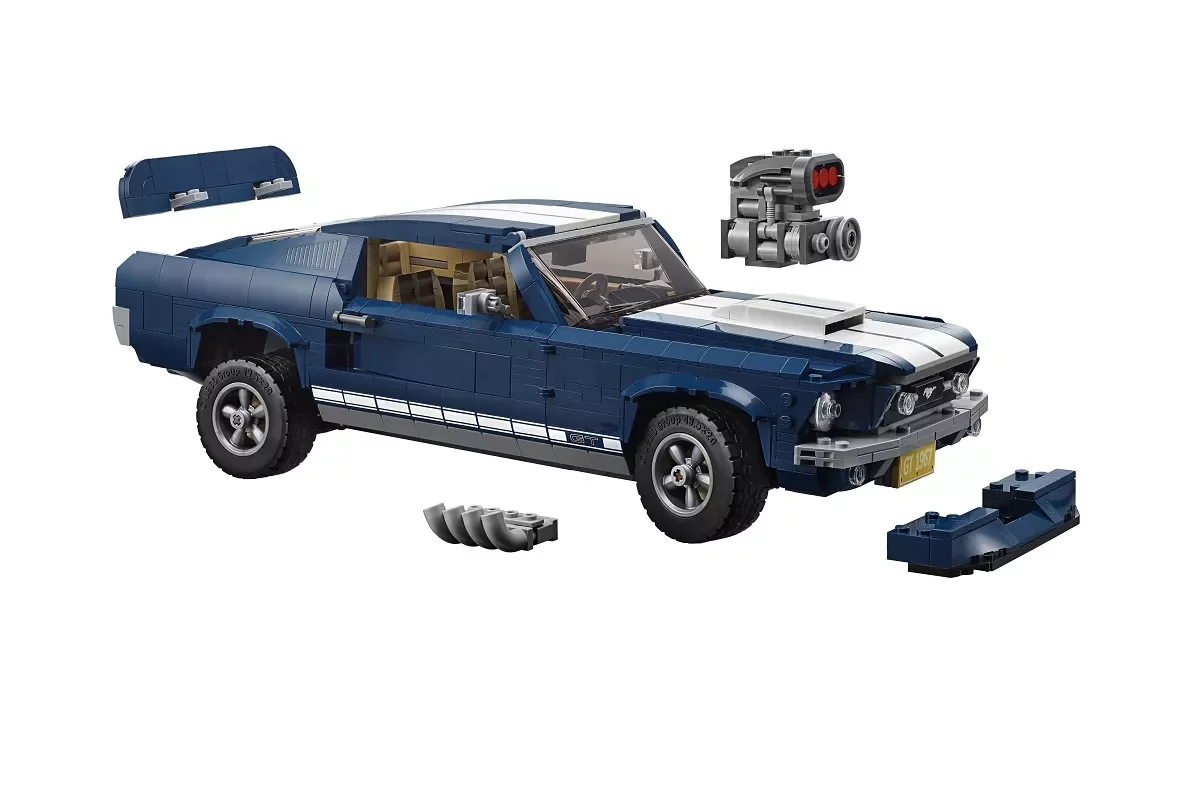 Stavebnice vznikla ve spolupráci společností Ford a LEGO® Group. Je inspirována Mustangem Fastback, modelem z roku 1967, a tvoří ji 1 470 dílků. Vůz má funkční řízení, tmavě modrou karoserii s bílými pruhy, kapotu s otvorem, vytištěné logo Mustang na masce, emblémy GT a pětipaprsková kola.