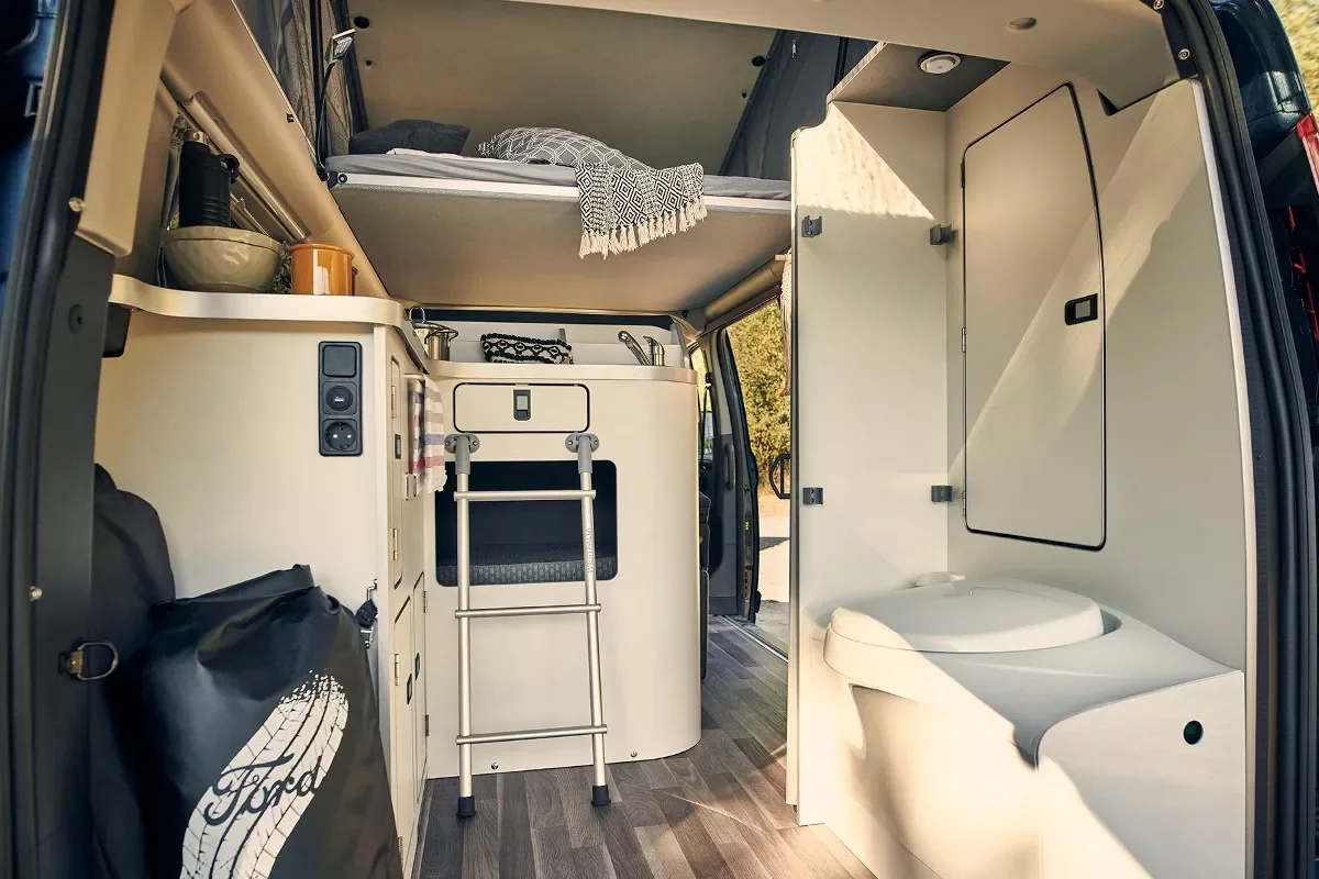 Větší vnitřní prostor varianty Plus umožnil instalovat dozadu ještě toaletu se sklopným umyvadlem a stahovatelnou zástěnou. Pitnou a užitkovou vodu dodávají dvě zabudované nádrže, každá o objemu 42 litrů.