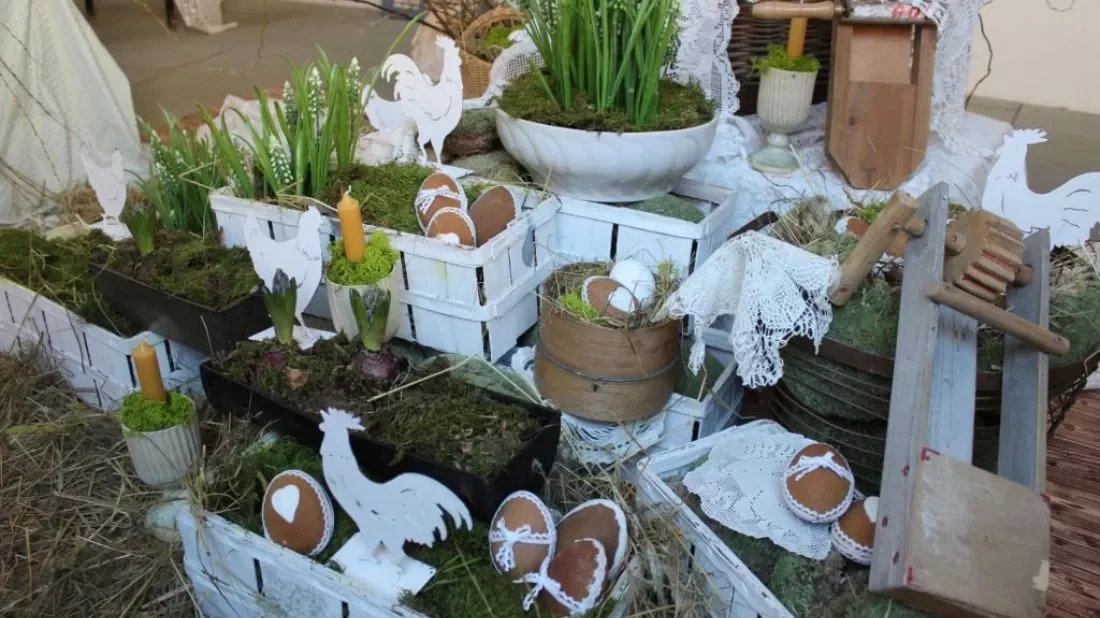 Druhá výstava zavede návštěvníky na nádvoří holešovského zámku. Jako výstavní prostor zde slouží prosklené arkády zámku, je to něco jako galerie za sklem. K vidění budou jarní motivy a nádherné krajky ze sbírky Martiny Stiborové z Brusného, o nápadité aranžmá se postarala Lenka Jagošová.