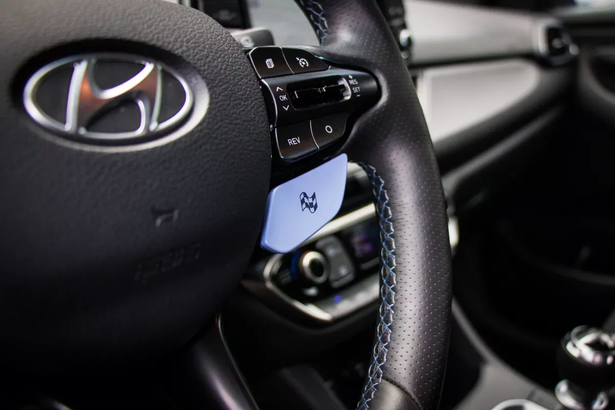 Hyundai vám ale nabídne širší možnosti. Na volantu totiž vedle obligátních tlačítek pro tempomat a audiosystém najdete i dvě větší modrá tlačítka, která mění jízdní režimy. Vlevo jsou ty nudnější, od ekonomického přes normální po sportovní. Vpravo potom začíná pořádná zábava.
