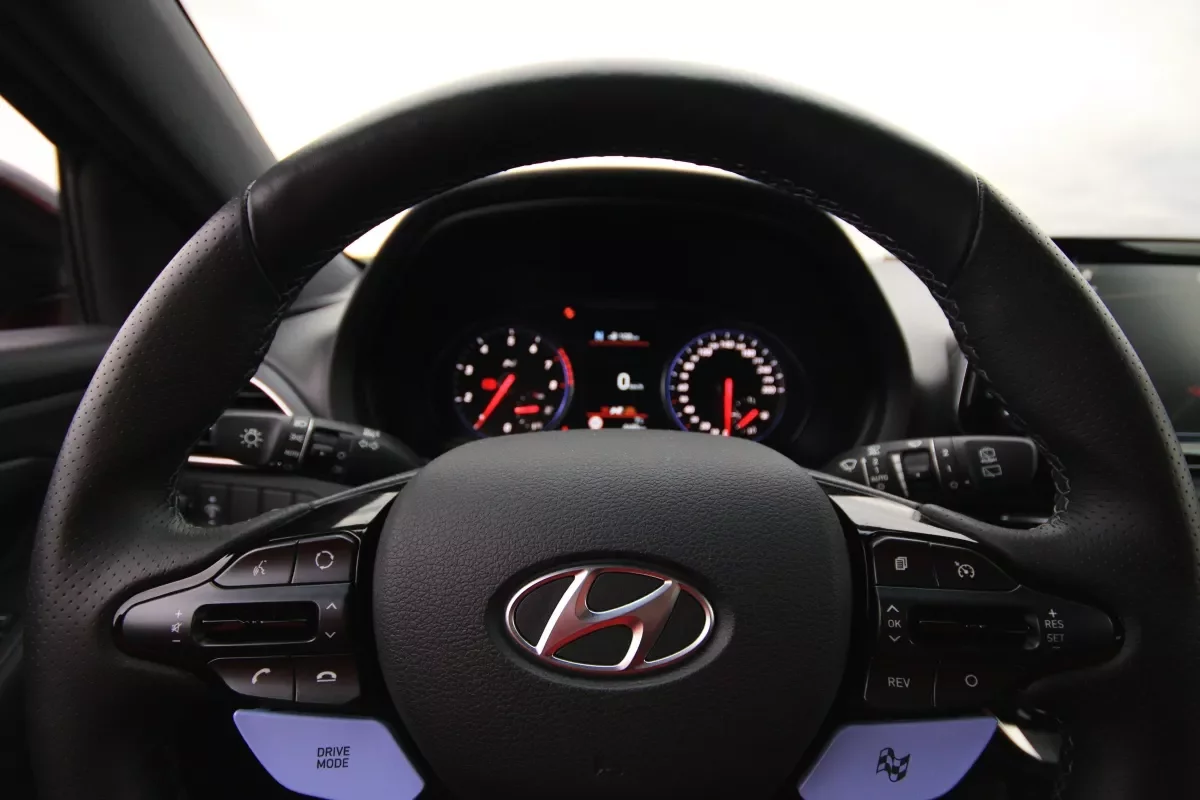 Jedna z věcí, která N-ko odlišuje od obyčejné i 30, jsou dvě tlačítka pod příčkou volantu. Levé přepíná režimy Normal, Sport a Eco, pravé zapne režim „N“ podle přednastavení od výrobce nebo režim Custom, který si můžete široce nadefinovat sami včetně odezvy diferenciálu, intenzity „meziplynu“ při podřazování a hlavně úplného vypnutí stabilizace, ochrany před nárazem a vším otravným, co s tím souvisí. Za to má Hyundai velkou pochvalu. Dále můžete nastavovat hlasitost výfuku, citlivost řízení, odezvu motoru na sešlápnutí plynového pedálu a další užitečné funkce.