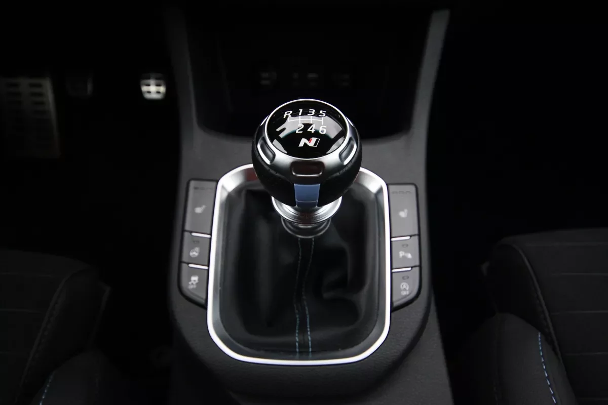 Interiér je také vylepšená základní i30, ale opět to není vůbec špatně. Není nijak okázale luxusní, přitom je vše funkční, sedačky jsou pěkné a ani po několika hodinách jsem z nich nebyl rozlámaný, volant má tak akorát silný věnec, hlavice řadicí páky je kulatá a hezky padne do ruky. Ještě přibyly koberečky s vyšitým písmenem N. Stejně tak výbava zahrnuje i příjemné věci typu vyhřívaný volant. Ještě je potřeba zmínit důležitou věc, auto má standardní ruční brzdu. Sice má, jak je teď moderní, asi díky pružným lankům poměrně slabý účinek, ale na pomoc pro lepší odbočení stačí.