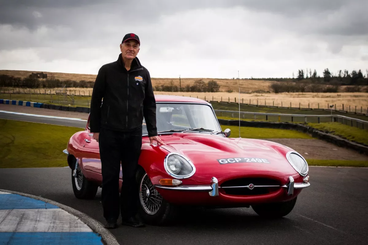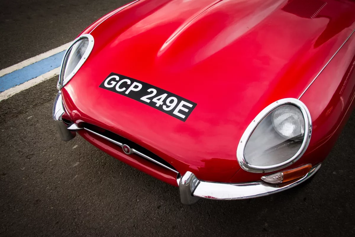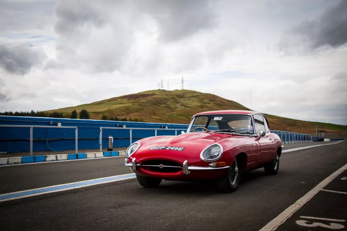 Aktuálně probíhá na Knockhillu zimní údržba a okruh je tak téměř opuštěný. Miluji kouzlo prázdného spícího závodního okruhu bez všeho toho humbuku a diváků okolo. Dýchne to na mě, jako bych tu byl doma. Kráčím do paddocku, kde už na mě čeká krásný červený Jaguar E-Type. Už zdálky vypadá úchvatně. Přistupuji blíže a prohlížím si ho dopodrobna.