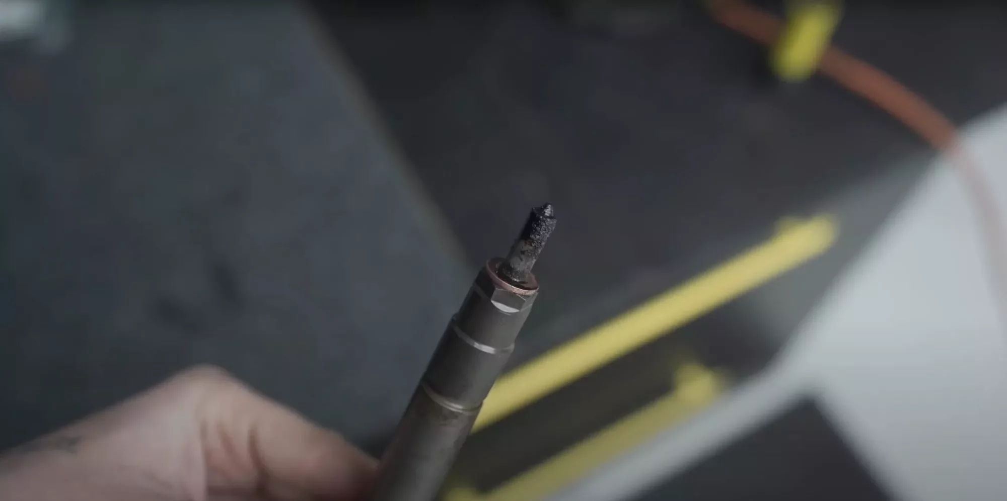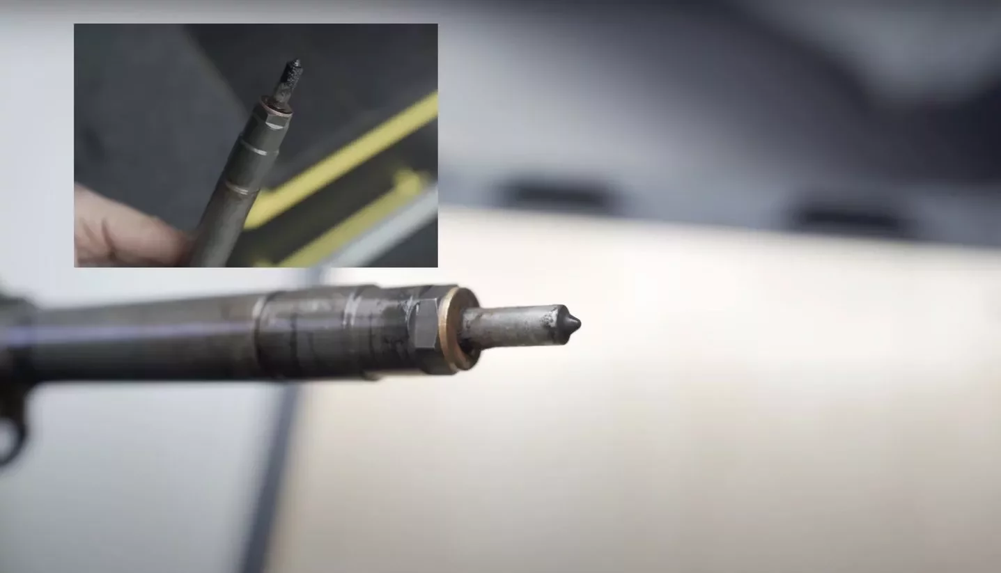 Vstřikovač silně zanesený karbonovými usazeninami na začátku testu.