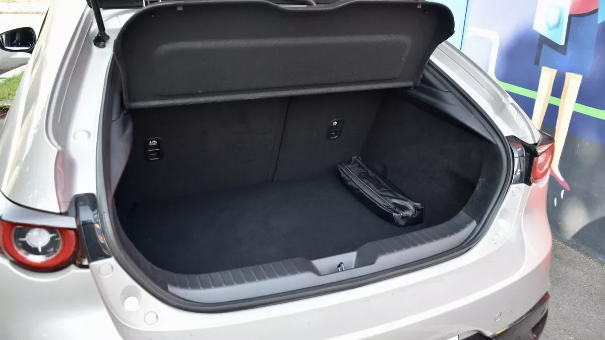 Mazda 3 HB má na délku 4,4 metru, takže jsem neočekával se svými 183 centimetry výšky na zadním sedadle žádné zázraky. Nástup a výstup byl samozřejmě lehce omezený, nohy je třeba trochu rozkročit, aby si dospělák vzadu našel ideální pozici a hlavou o strop jsem taky nedrhnul. Těsně. Ale pocit stísněnosti díky menšímu oknu (i toho od zavazadlového prostoru) spíš převládal. Na druhou stranu jsem si vzpomněl na příběh mého kolegy, který před dvěma lety se stejným vozem v pěti dospělých lidech jel až do Švédska. A všichni údajně byli spokojeni.