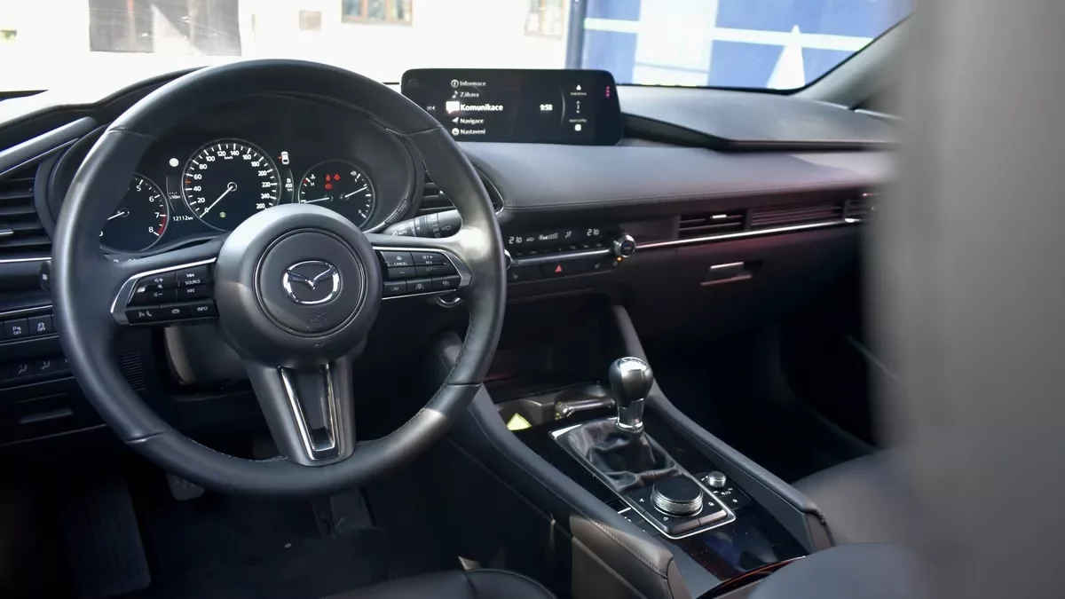 Tradiční prvky uvnitř doplňuje také klasická řadicí páka šestistupňového manuálu, která dodává pocit, že tahle veskrze úplně obyčejná mašinka se na silnicích pohybuje desítky let, jen si ji Mazda oprašuje a dál z ní dělá funkční auto. Opak je pravdou, pod kapotou se totiž skrývá jednotka e-Skyactive X, jejíž funkci se teď pokusím lehce vysvětlit.