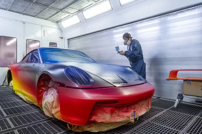 A proto přišly na řadu zlaté české ručičky, které z nenápadného vozu, vytvořily nepřehlédnutelné umění. Tím, že má nové Porsche 911 GT3 Touring mohutnější tvar a zadní kola větší než přední, snažil se toho umělec využít i při hledání ideální barevného schématu. Začal tak žlutou barvou, která přechází do červené až temně modré, jenž se postupně zesvětluje. Tím bylo dosaženo efektu připomínajícího plameny. Modrá barva pak zůstala na střeše a doplnil ji i přechod do černé.