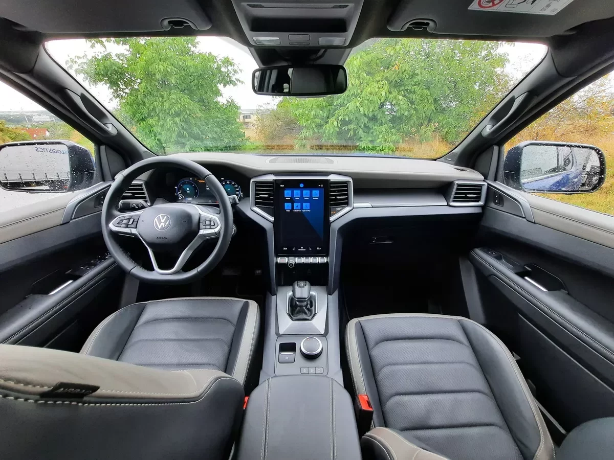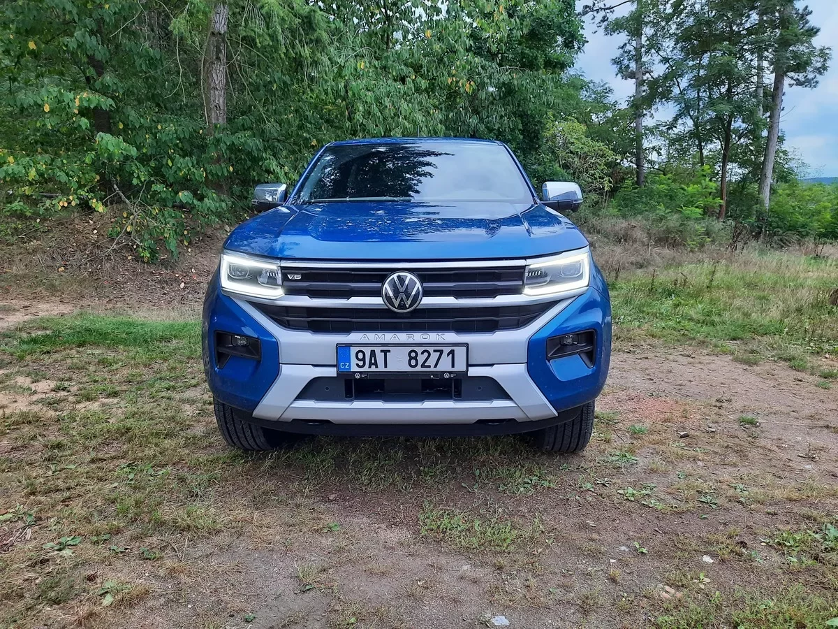 V rámci vizuálu si určitě zamilujete ty úzké světlomety, které vystupují z robustní masky. Navíc v oné vrcholové verzi se můžete pyšnit inteligentními matrixovými svítilnami. V praxi to znamená, že i v noci se budete cítit jako ve dne, uvidíte všechno, a přitom nebudete oslňovat protijedoucí řidiče, což si nebudeme nalhávat, je v těchto velkých pick-upech většinou problém, protože jste výš než ostatní účastníci provozu. Světla jsou schopna rozrážet i velmi hustý déšť, takže se nemusíte obávat, že by plnila svou funkci jen za naprosto ideálního počasí. Jinak Aventura nabídne ještě příjemný vnější prvek, a to jakési tvarování předního nárazníku do písmene X. Tím, že byl metalicky lakovaný, opravdu z té modré příplatkové (17 146 Kč) metalízy vystupoval a dával Amaroku luxusnější pocit.