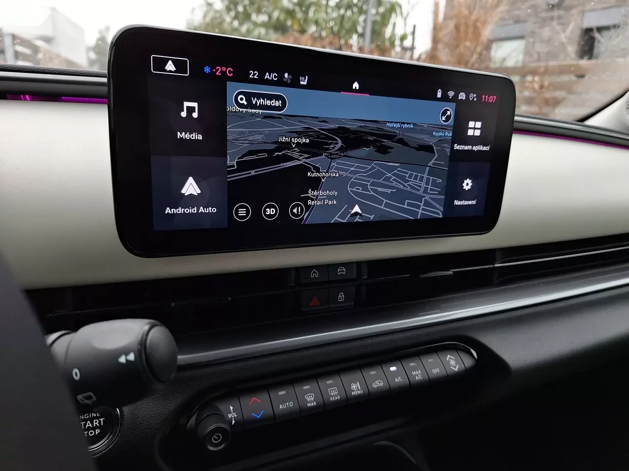Pochválím ale zase displej infotainmentu a jeho rychlost, stejně tak připojitelnost na Android Auto. Úsměv na tváři mi zase vyskočil, když jsem viděla fyzická tlačítka pod displejem na zvuk a na ovládání klimatizace.