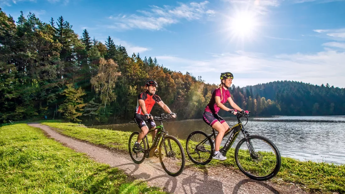 Na tuto trasu doporučujeme kvalitní krosové elektrokolo s dlouhým dojezdem. Pánský a dámský model MTF CROSS 9.1 a MTF CROSS 9.1 W tato kritéria stoprocentně splňují. Jedná se o prémiová elektrokola s motorem BOSCH Performance Line nové generace a při volbě silnější baterie ujedete na jedno nabití až 150 kilometrů. Najdete na nich prvotřídní komponenty jako přehazovačku Shimano Deore, hydraulické kotoučové brzdy Shimano BR-MT 200 nebo odpruženou vidlici SR Suntour uzamykatelnou z řídítek. Řídítka jsou opatřena integrovanými rohy, takže můžete volit několik úchopů, což při delší trase přijde určitě vhod. Díky užším plášťům vám bude cesta po silnicích a cyklostezkách i rychleji utíkat.