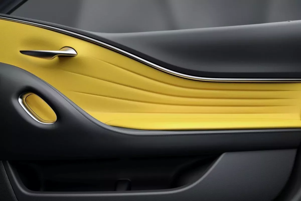 Speciální barevný motiv se opakuje i v kabině, kde černé výplně dveří zkrášlují intarzie z materiálu Alcantara v odstínu teplé žluté. Tento odstín byl použit i pro kontrastní prošívání sedadel z bílé kůže, přístrojového panelu, volantu a loketní opěrky na středovém panelu, coby názorná ukázka řemeslného zpracování takumi, které je charakteristickým znakem u vozů této značky.