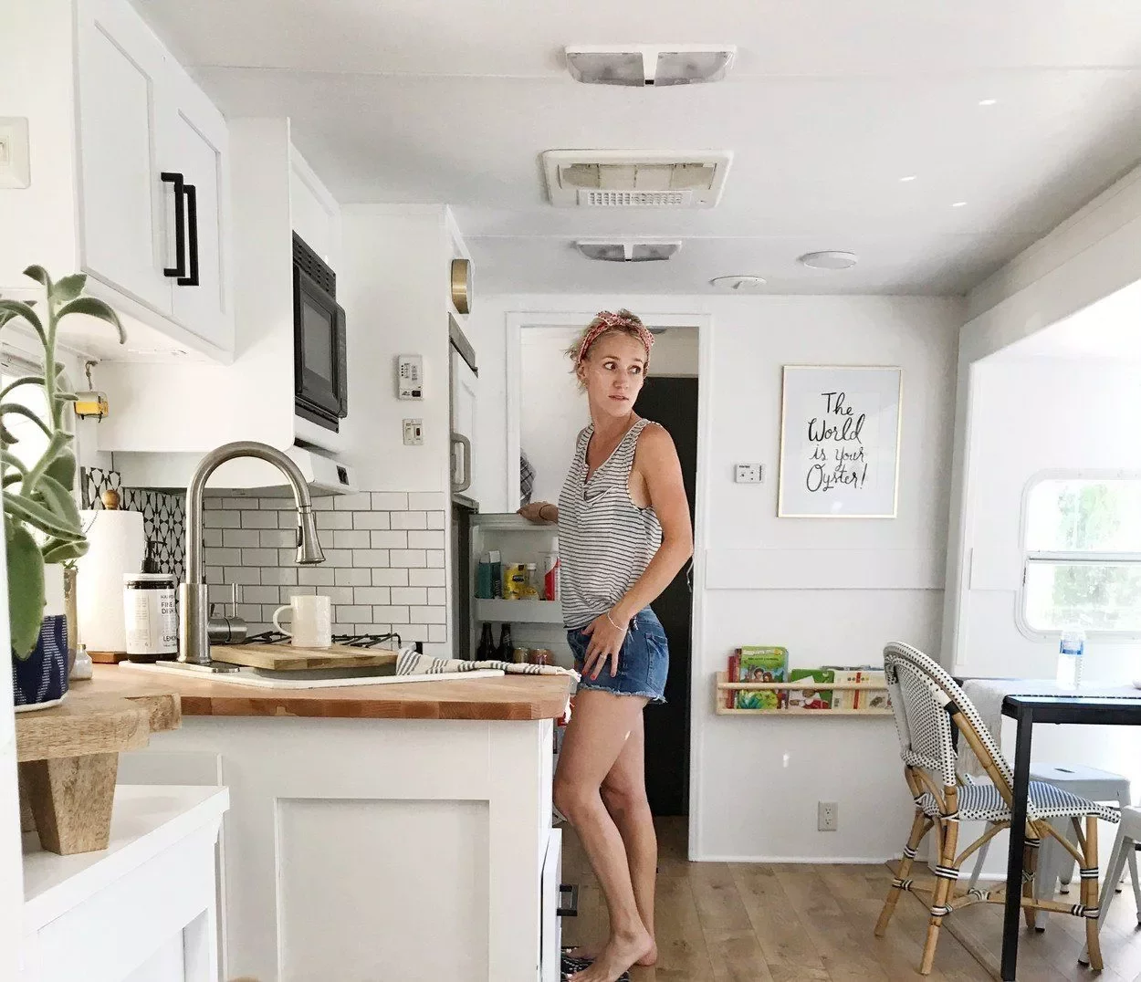 Bylo rozhodnuto, rodina koupila přívěs a začátkem roku 2017 se do něj přestěhovala. Pak přišla na řadu renovace, kterou zvládli v rekordně krátkém čase tří týdnů. „Za renovaci jsme utratili zhruba 3 000 dolarů, za dalších 500 jsme přívěs natřeli zvenčí,“ říká Ashley.