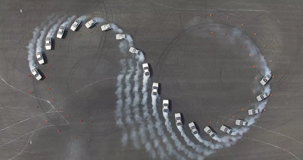 A tak ve Stanfordu postavili několik kuželů, beden a balíků sena, kolem nichž vytýčili trať plnou ostrých i táhlých zatáček a nakombinovali mezi nimi všechna možná napojení. Výsledná dráha má délku jednoho kilometru a její průjezd v rychlém driftu skutečně není triviální.