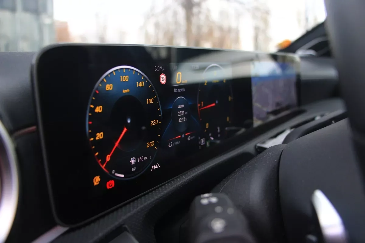 Tohle je výtka všem mercedesům, nejen novému Áčku. Alespoň že pravý displej multimédií je dotykový, takže třeba adresu do navigace naklikáte snadno, ale s výborně funkčními hlasovými povely je to vlastně zbytečné. Hodně zajímavým prvkem je virtuální realita promítaná do navigace. Jakmile přijedete na křižovatku, na displeji se zapne obraz z přední kamery, do nějž se promítají navigační šipky, název ulice nebo číslo popisné. Působí to velmi efektně.