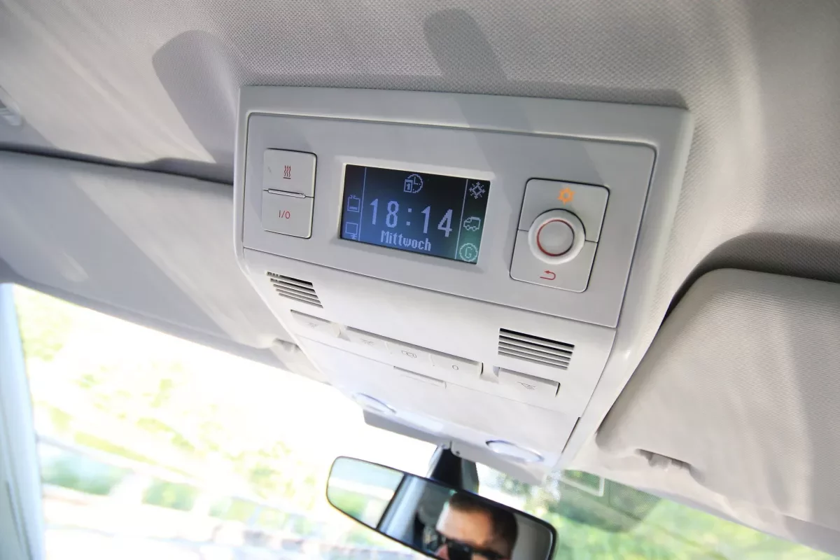 Z funkčního hlediska jsou oba systémy velmi podobné. Nastavovat tu můžete nezávislé topení a intenzitu chlazení ledničky, sledovat stav nádrže na pitnou a odpadní vodu nebo nastavovat časovač – jak na nezávislé topení, tak třeba budík. Trochu lepší systém má Marco Polo, jelikož je obrázkový a teplotu vytápění můžete nastavovat přesně ve stupních Celsia, na rozdíl od Californie, která má systém v pouze němčině a teplotu nastavujete na nicneříkající stupnici od jedné do deseti. Tahle konkrétní California se ovšem navíc pyšní příplatkovým elektrickým otevíráním střechy, která se ovládá taktéž z panelu.