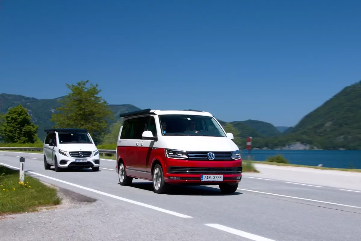 Pozorné oko čtenáře si jistě povšimne, že ani jedno z aut, které jsme si na cestu k rakouským jezerům vybrali, není současnou verzí po faceliftu. Jak Mercedes třídy V, tak Volkswagen T6 prošly nedávno modernizací, jenže především díky vytíženosti výrobních linek VW ještě chvíli potrvá, než se auto dostane k prvním zákazníkům. Modernizované Véčko už nachází své první majitele, na Téčko si však počkáte až na přelom roku a na obytné verze dokonce ještě zhruba rok!