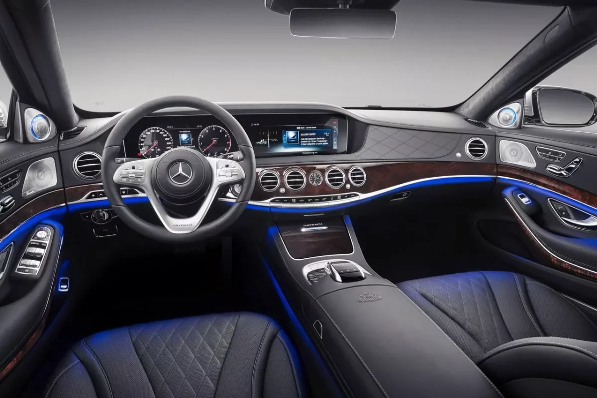 Pro interiér jsou nabízeny dvě nové exkluzivní barevné kombinace: hnědá armagnac/černá a béžová savanna/černá. Čalounění černou kůží Exklusiv Nappa Maybach lze navíc objednat volitelně s kontrastním prošíváním v odstínech mědi, zlata nebo platiny. Rovněž nové jsou v nabídce ozdobné prvky designo Magnolie flowing lines.