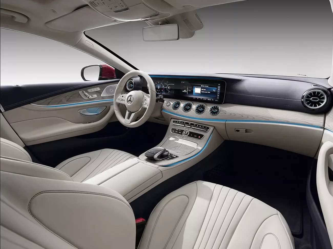 Luxusní interiér kupé CLS zanechává silný dojem svými čistými základními tvary, které se vyznačují, stejně jako exteriér, smyslnou ladností. Celek završují velmi kvalitní materiály a jejich vynikající zpracování. Díky sportovní přístrojové desce se zvýrazněnou šířkou a barevným kombinacím vzniká pocit mimořádně velkorysého prostoru. K vzletnému celkovému dojmu přispívá vlnitý průběh linií od předních až k zadním dveřím, které se v úrovni střešního sloupku B zužují. Novými výjimečnými prvky dekoračního osvětlení jsou osvětlené výdechy ventilační soustavy, připomínající turbíny letadlových motorů. Sportovní dojem zvýrazňuje také manufakturní charakter sedadel. Na přání se dodává panel přístrojů s širokoúhlým displejem o vysokém rozlišení. Dva 12,3“ displeje jsou přitom umístěny pod společným, souvislým krycím sklem. Středová konzola s ozdobným obložením ze dřeva s otevřenými póry nebo lesklou povrchovou úpravou vyvolává dojem, že se vznáší v prostoru.