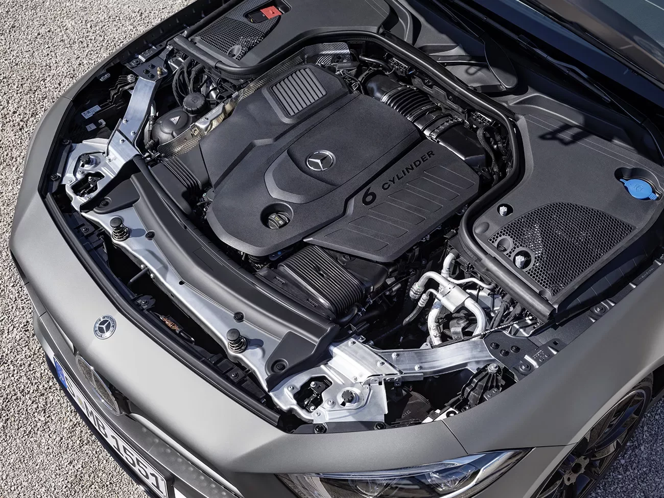 Nejvýkonnějším motorem je zážehový šestiválec. Nový, důsledně elektrifikovaný řadový šestiválec se systémem EQ Boost (integrovaný spouštěč-generátor) a 48V elektrickou sítí přichází na start v modelu CLS 450 4MATIC. Jeho výkonové parametry jsou: 270 kW/367 k a 500 N.m plus krátkodobě dalších 250 N.m točivého momentu a 16 kW/22 k výkonu prostřednictvím systému EQ Boost. Integrovaný elektromotor podporuje prostřednictvím systému EQ Boost spalovací motor například při zrychlení, umožňuje jízdu bez spalovacího motoru (setrvačná jízda) a nabíjí akumulátory velmi účinnou rekuperací. Tím je možné snížit spotřebu paliva v míře, která byla dosud vyhrazena pouze vysokonapěťové hybridní technice. Sečteno a podtrženo, nový řadový šestiválec nabízí jízdní výkony osmiválce při výrazně nižší spotřebě paliva. CLS 450 4MATIC má standardně filtr pevných částic.