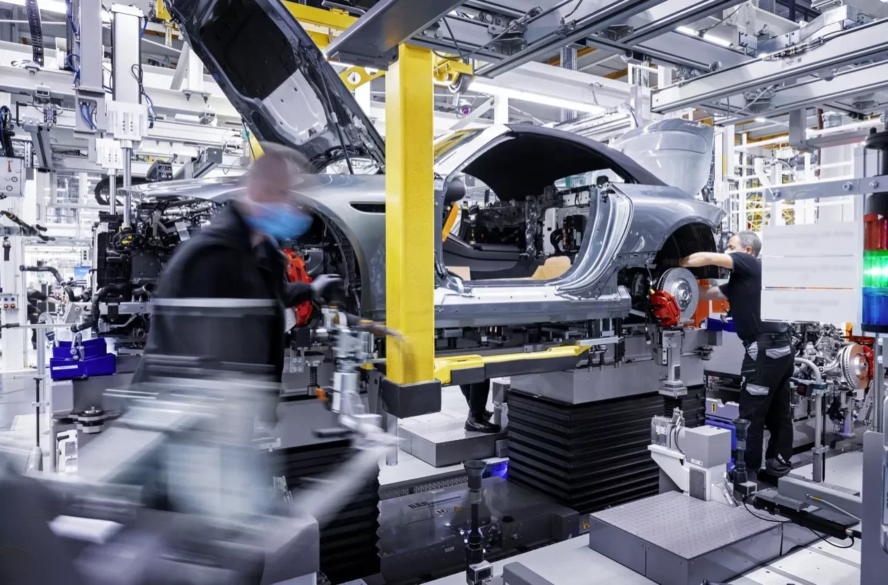 Přeprava jednotlivých dílů a potřebného materiálu přímo na montážní linku probíhá automatizovaně prostřednictvím bezobslužných přepravních systémů. Nejmodernější technika se uplatňuje také při tzv. „svatbě“. Během jednoho z nejdůležitějších okamžiků procesu výroby v každé montážní hale dochází ke spojení karoserie s motorem V8 dodávaným „just in time“ z Affalterbachu.
