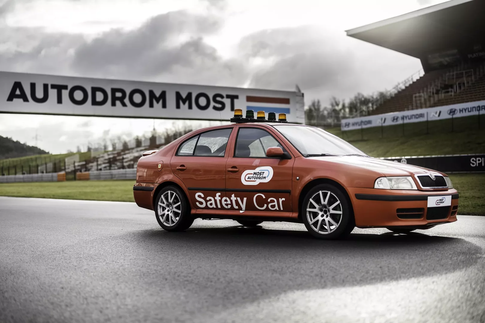 Auto začalo sloužit na autodromu v Mostě v roce 2002 společně s dalšími prototypy a předsériovými vozy mladoboleslavské automobilky. Škoda Octavia RS má motor 1.8 turbo, s výkonem 132 kW. Po rozhodnutí udělat z tohoto „nového“ ostrého škodováckého hatchbacku Safety Car, bylo auto vybaveno oranžovo-zelenou majákovou rampou dle platných řádů FIA. Dostalo radiostanici s přímým spojením na ředitele závodu, upravily se brzdy a nazuly silniční pneumatiky Dunlop (semislicky přišly až mnohem déle).