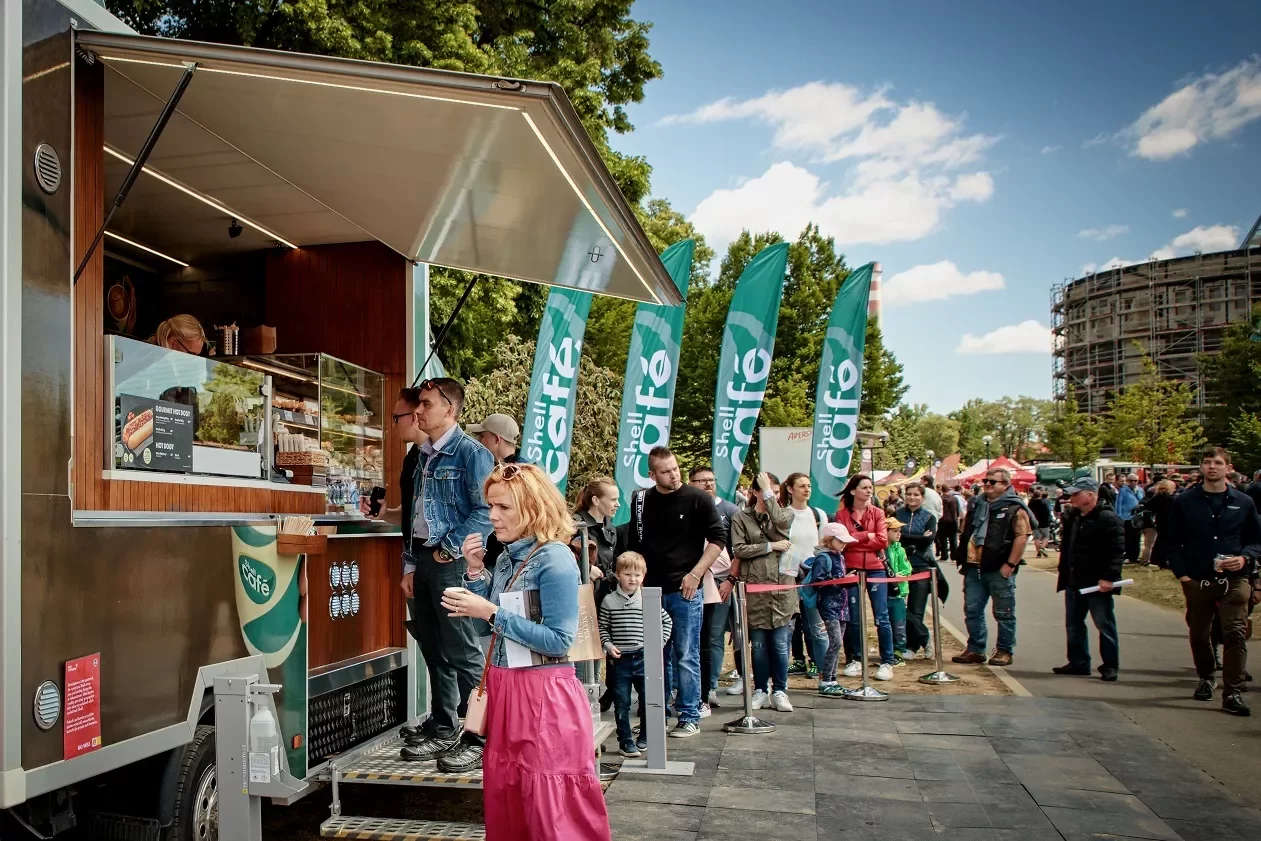 Shell zve všechny návštěvníky i do svého Food Trucku. Lahodná káva, oblíbené hotdogy a další pochoutky z občerstvení značky Shell Café budou připraveny v pohodlné gastro zóně, která nabídne příjemné kryté sezení, ve kterém si můžete odpočinout nebo najít útočiště před slunečními paprsky i dešťovými kapkami.