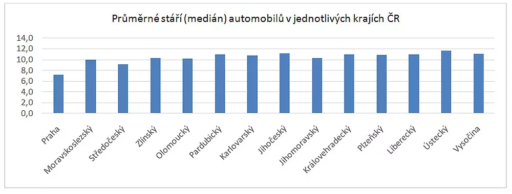 S velkým náskokem od zbytku krajů nabízí aktuálně nejmladší vozy hlavní město Praha, a to s průměrem 7,2 roku. Následuje Středočeský (9,1 let) a Moravskoslezský kraj (10 let).