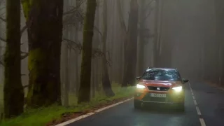 Pokud je v mlze jen 50metrová viditelnost, měli byste tuto vzdálenost udržovat jako bezpečnostní odstup od vpředu jedoucího vozidla a nepřekračovat rychlost 50 km/h. „Jen tak budete mít dostatek prostoru pro zastavení v nouzové situaci,“ vysvětluje Jordi. Velmi praktickým pomocníkem je asistenční systém Front Assist s funkcí automatického brzdění, protože kontroluje vzdálenost od vpředu jedoucího vozidla a v případě nutnosti automaticky aktivuje brzdy.