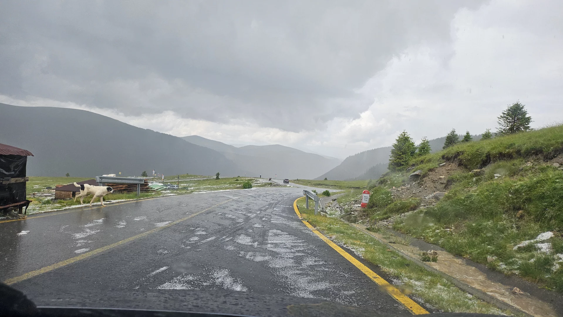 Polští motorkáři ale nejsou jedinou nástrahou na této proslulé horské silnici. Počítat musíte také se zvěří kráčející přímo po silnici. Během několika málo kilometrů jsme potkali lasičku, stádo krav, ovcí i smečku divokých psů. V přilehlých vesnicích na začátku Transalpiny pak úplně běžně narazíte například na koňský povoz. V neposlední řadě nám svezení komplikovalo rychle se měnící počasí. Náhle průtrže mračen silnici na několika místech zaplavily, zasypaly kroupami a naplavily na ni bordel. Naštěstí i na to jsou tu místní zvyklí a okamžitě tyto zasažená místa začali odklízet.
