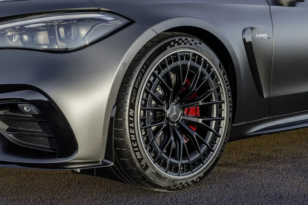 Přední nárazník je v prostřední části vyvýšen (čím vytváří decentní křídlo ve tvaru písmene A). Tím je zajištěn přívod většího množství vzduchu do motorového prostoru. Týká se to i vnějších vstupů vzduchu se dvěma příčnými lamelami. Při pohledu z boku jsou nejvíce patrné výrazně pojaté hrany. Rozšířené přední a zadní blatníky, široký rozchod kol (+58 mm vpředu a +75 mm vzadu ve srovnání s výchozím kupé Mercedes‑Benz) a standardně 19palcová kola přispívají k celkově sportovnější vizáži. Na přání jsou k dispozici 20palcové ráfky.