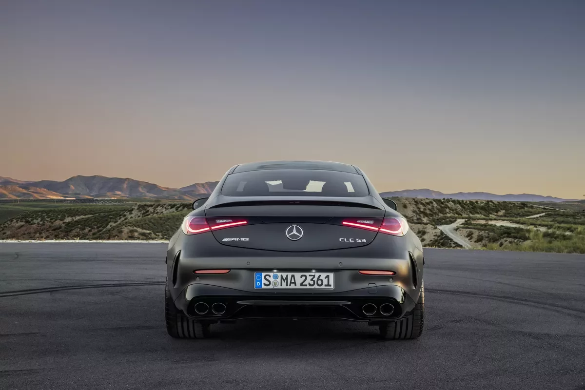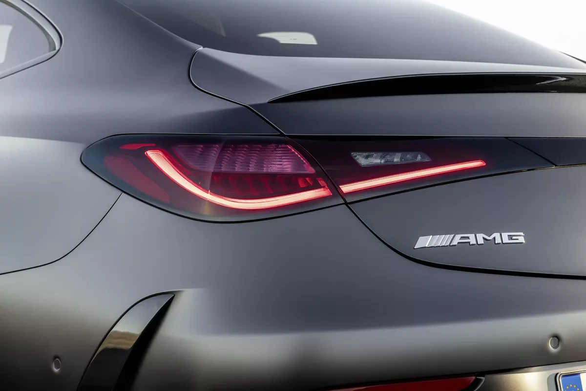 Zadní světlomety vzájemně propojuje tmavě červený designový prvek, který zdůrazňuje šířku zadní části vozu. Vizuálními lákadly jsou dále dvojité kulaté koncovky výfuku, které jsou harmonicky integrovány do zadního nárazníku. Jejich tvar v oblasti za podběhy rovněž přispívá ke zlepšení aerodynamiky a účinnějšímu proudění vzduchu. Odtrhová hrana na víku zavazadlového prostoru je lakována v barvě karoserie, volitelně je k dispozici také v černé barvě jako součást sady AMG Styling.