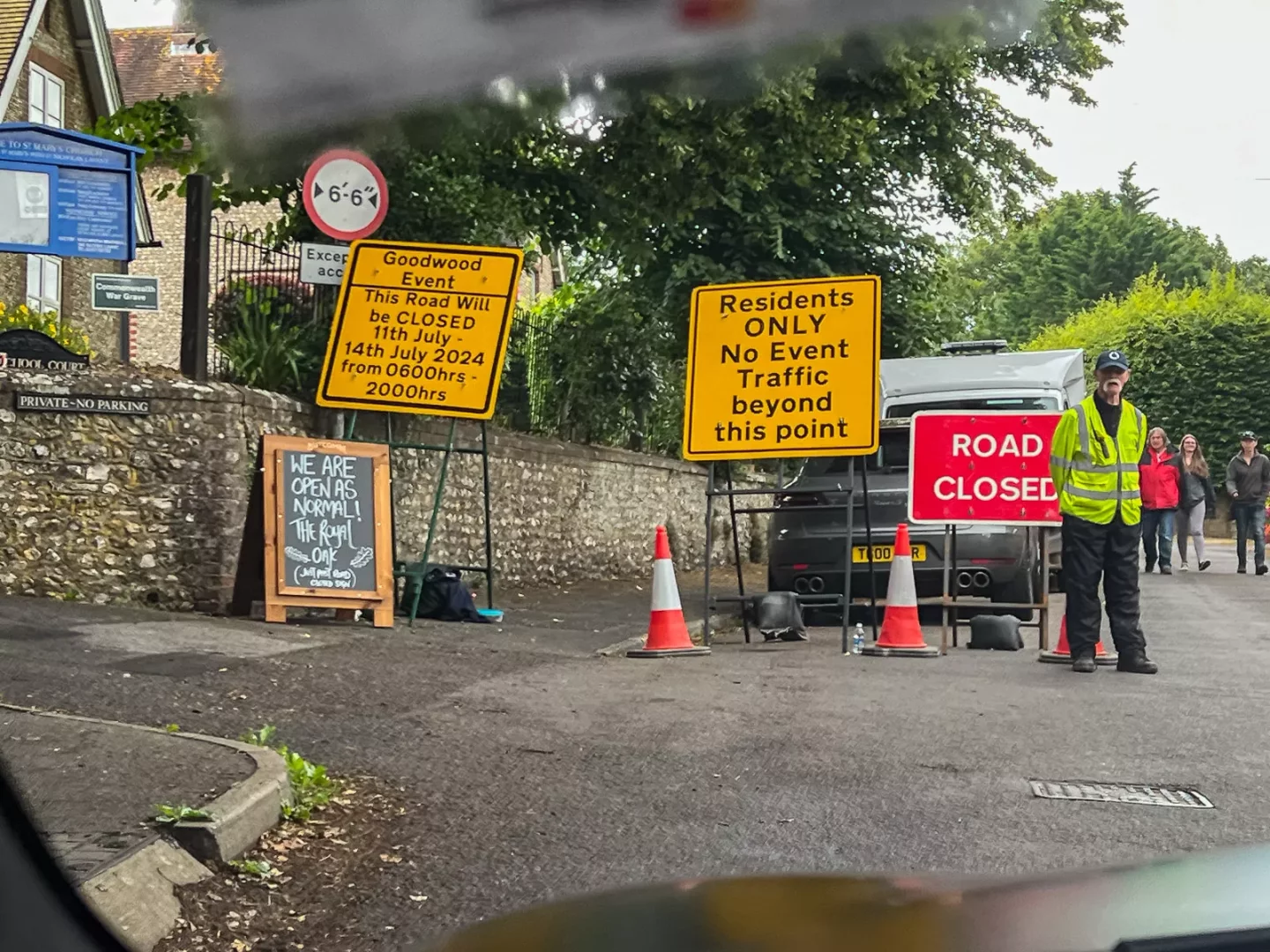 Jízdu končíme v dlouhatánské koloně táhnoucí se v okolí Goodwoodu. Není to kolona jak někde v Praze na magistrále. Kromě Defenderů, Range Roverů a Jaguarů to je samé Porsche, Aston Martin, kousek před námi jede Alfa Romeo 4C a tak podobně. Všichni míří na Festival rychlosti. My to bereme oklikou přes přilehlý závodní okruh.