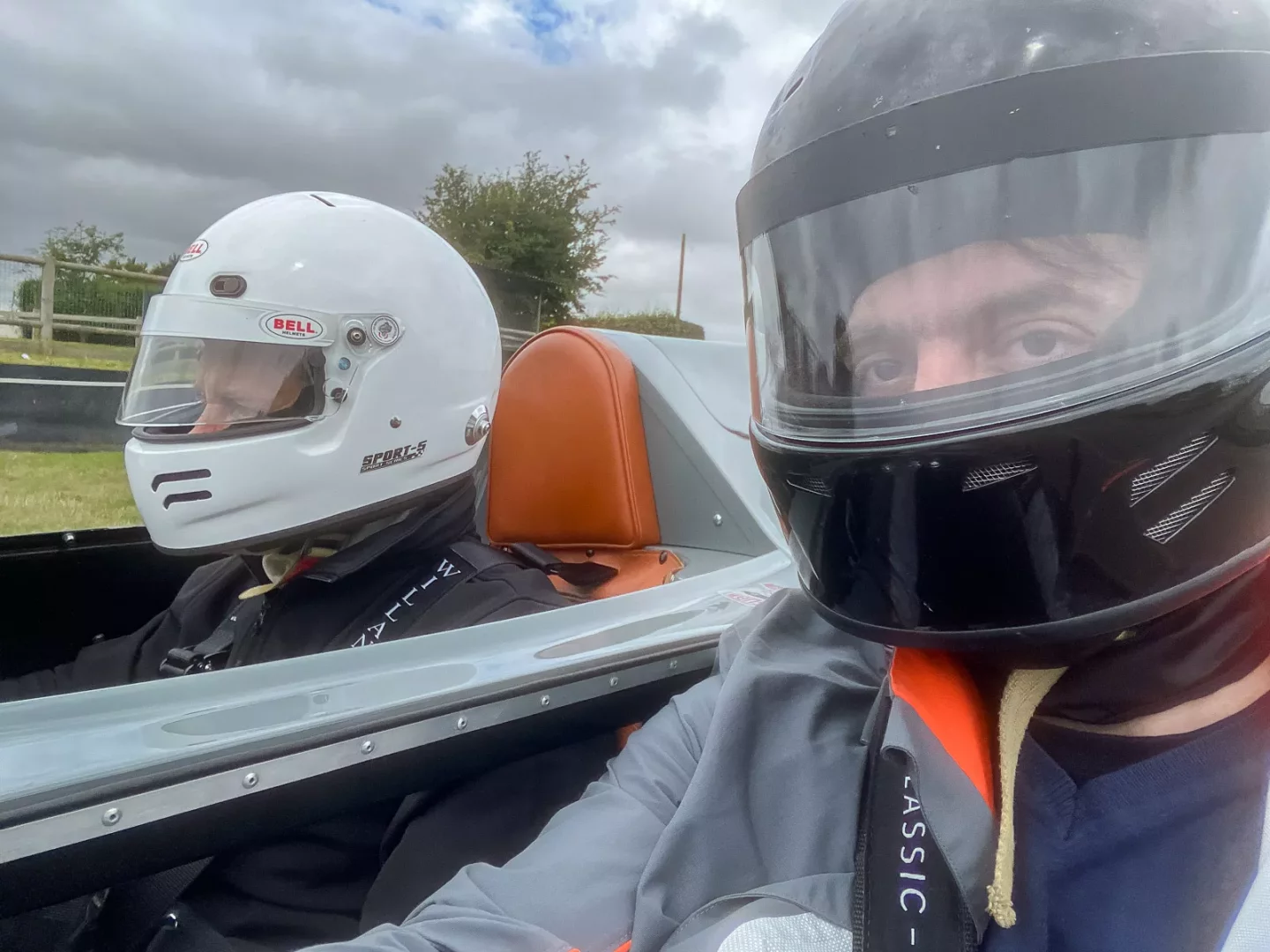 Druhá jízda už měla být zajímavější. Hned jsem se hrnul do D-Type a také jsem ho dostal i s řidičem pevně usazeným v malinkatém kokpitu. Začal jsem se tam přes ty miniaturní dveře skládat, když se přiřítil místní maršál s tím, že mám kraťasy a to není u otevřeného auta podle předpisů okruhu možné. Všichni na něj koukali, co to mele. Zejména já. Ale jak je v Británii zvykem, předpisy se musí dodržovat, takže místo mne do auta šoupli někoho jiného a já jsem přemýšlel, co s tím. Kufr s věcmi jsem nechal pořadatelům akce na hotelu. Záchrana se dostavila nakonec sama. Šéf JLR Classic mne odvedl bokem s neodolatelnou nabídkou na zápůjčku jeho kalhot. Ty vytáhl ze svého služebáku, což byl Jaguar XKR-S. Od pohledu bylo jasné, že to ale bude výzva. Výškově mi byl podobný, ale byl podezřele hubený a jeho oblíbeným střihem evidentně byly kalhoty typu slim-fit. Na záchodě jsem s kalhotami hodně bojoval a nakonec po mocném nádechu se to povedlo. Vypadal jsem, jako kdybych měl legíny a také se mi pánové z JLR Classic smáli, ale do D-Type jsem už mohl. Hurá!