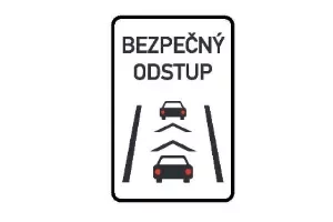 Ta na našich silnicích už existuje, ale dočkala se jiného zpracování, zejména zjednodušení formulace. Původně na značce bylo pouze vozidlo a za ním dvě šipky, což pro některé motoristy bylo příliš složité zobrazení. Nově je na značce vyobrazeno vozidlo, před ním dvě šipky a další vozidlo. Toto již srozumitelnější zobrazení říká, že si řidič má hlídat dvou sekundový odstup od vozidla předním. Co šipka to jedna sekunda. Šipky se nachází ostatně i na silnicích, aby řidič věděl, jakou vzdálenost to zhruba představuje.
