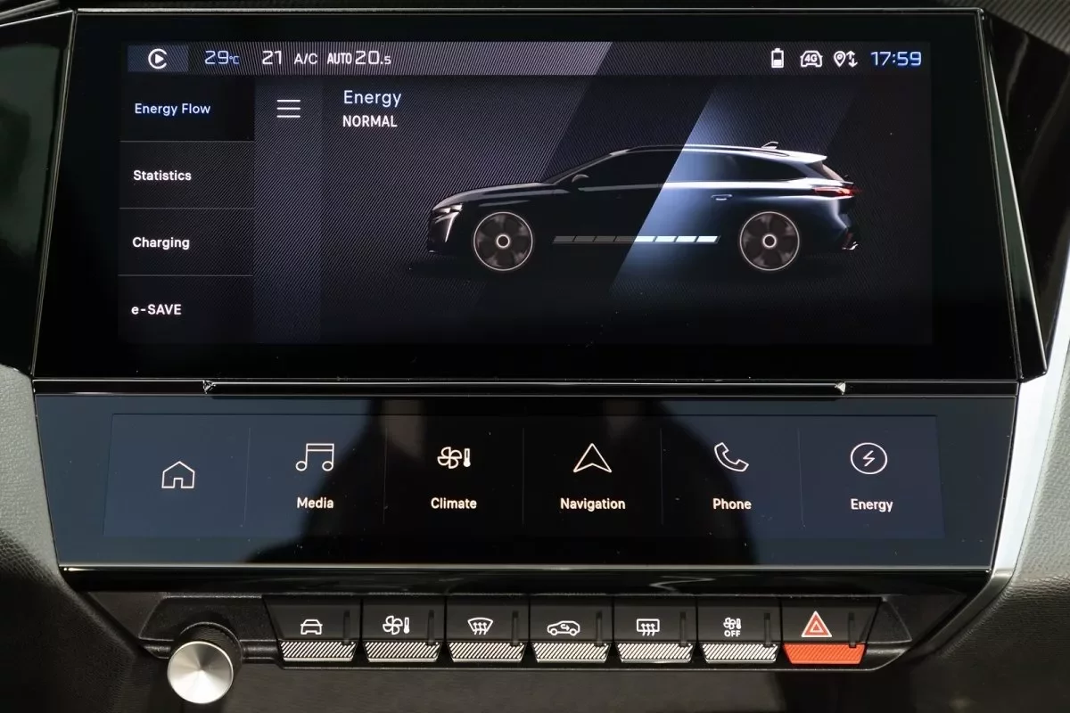 ...308 SW má připojení na internet, což umožňuje mnoho různých funkcí? Např. 3D online navigace s aktuální dopravou, hledáním parkovacích míst vč. cen za parkování, zjišťováním cen paliva v okolních čerpacích stanicích apod. Aktualizace software a map se provádějí „over the air“ jednou měsíčně.